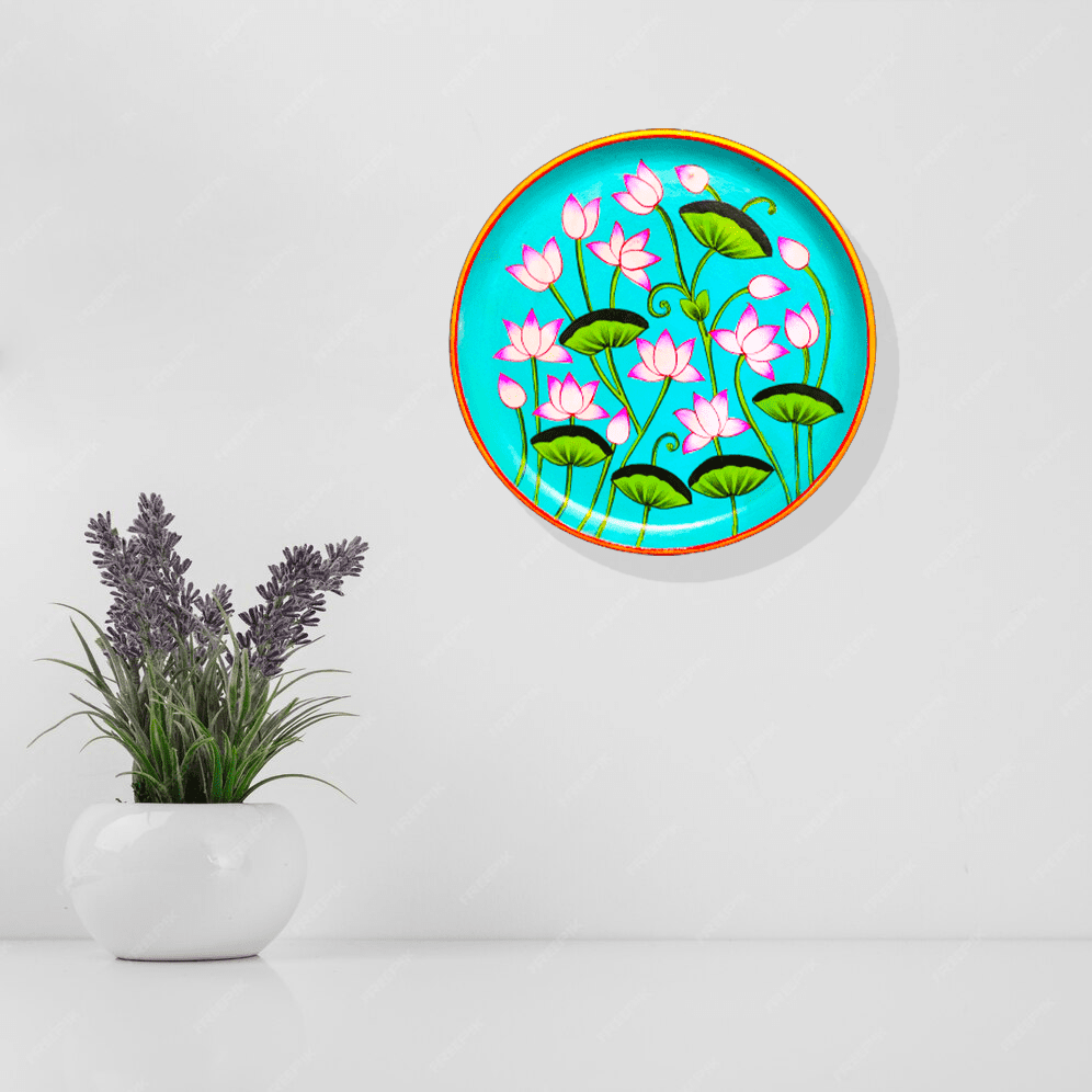 Handpainted Lotus Wall Plate ( Sky-blue Color )